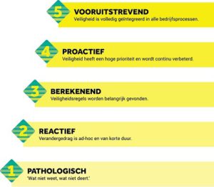 Zoals bij elke ladder, zijn er diverse treden, die een niveau van veiligheidsbewustzijn aangeven. De SCL kent vijf treden. De laddertreden geven de ontwikkelingsfase aan waarin in een bedrijf zich op het gebied van veiligheidsbewustzijn begeeft.