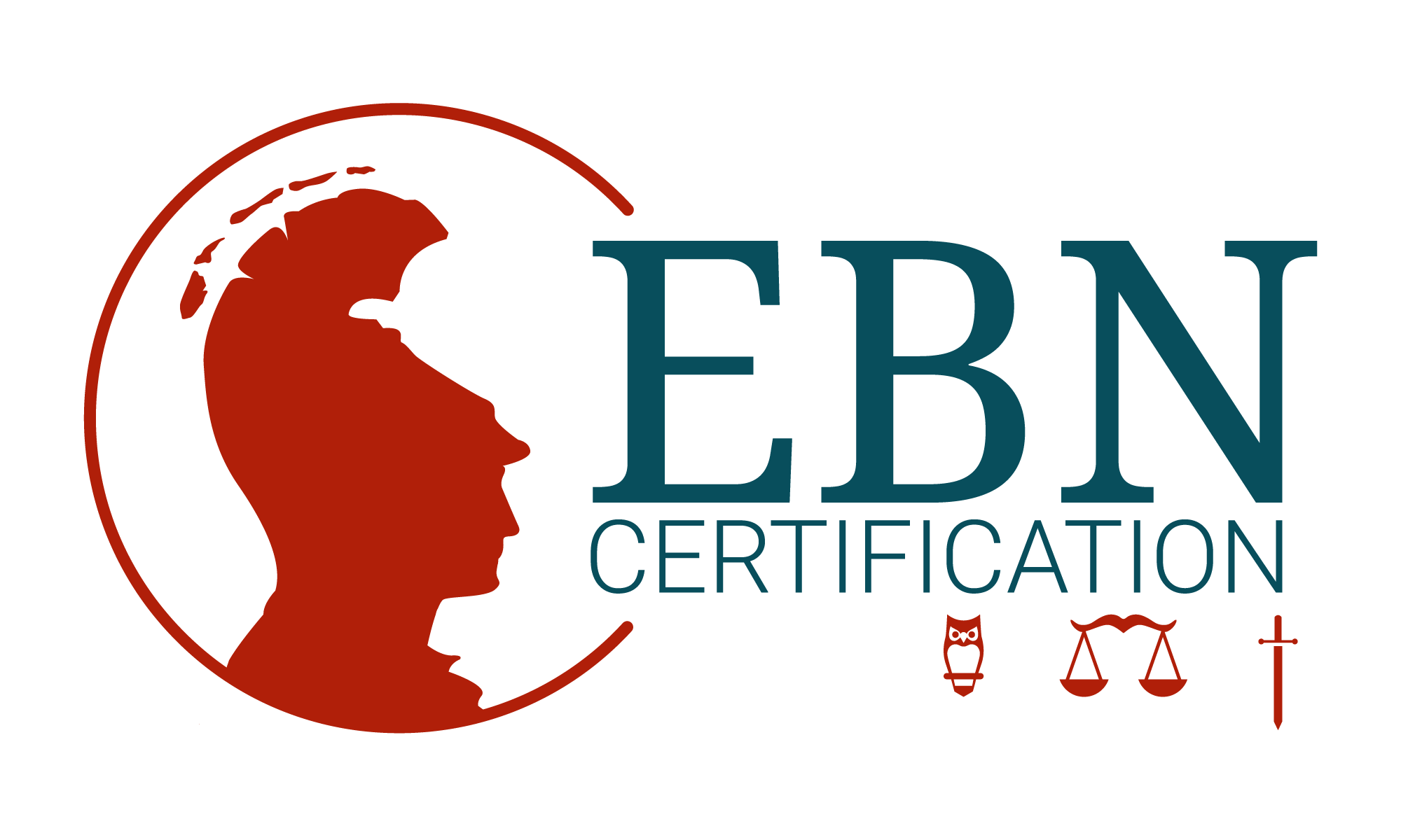 Een aantal bekende eigenschappen en krachten die zijn toegeschreven aan de godin Athene, zijn terug te vinden in het logo en komen overeen met de waarden en identiteit van EBN Certification: wijsheid, recht(vaardigheid) en moed.